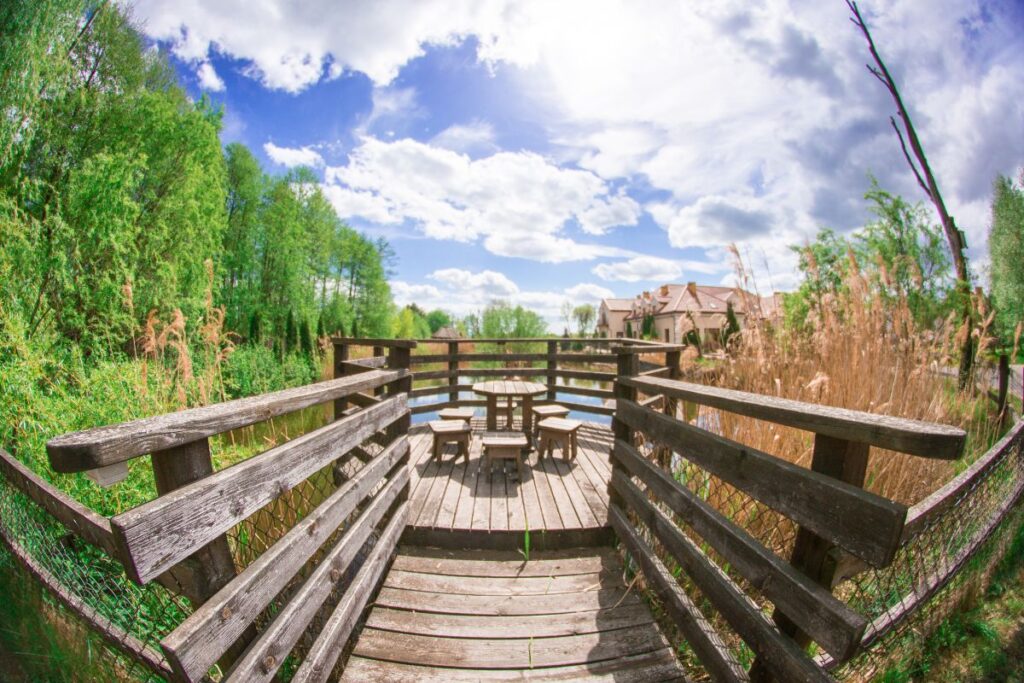 Dom Weselny Salwin to nie tylko wnętrza – oferujemy również rozległy plac wokół budynku. To idealne miejsce na relaks, dodatkowe atrakcje czy niezapomniane zdjęcia w naturalnym otoczeniu.
